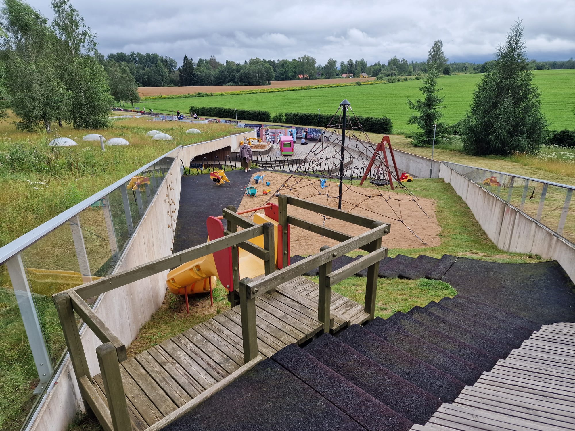Access to the children’s area, including for people using mobility aids, is possible either from the foot of the slope or from the top via the stairs.