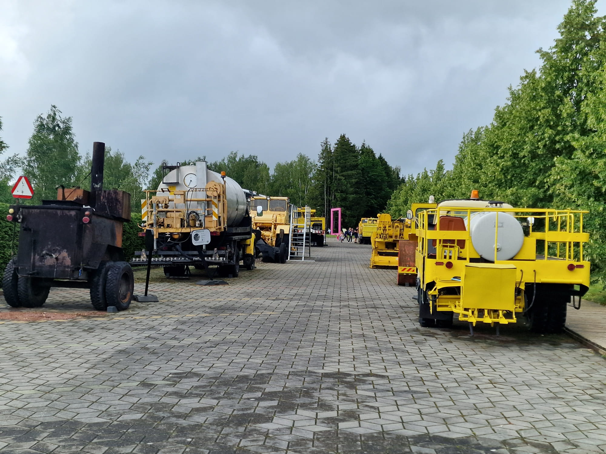 The museum’s exhibits are largely outdoors, in an area surfaced with smooth grey paving stones. The area has various ascents and descents, with benches available. Visiting the exhibits is easy; the information boards provide additional details, including the option to listen to audio information about the machines by scanning QR codes on the panels.