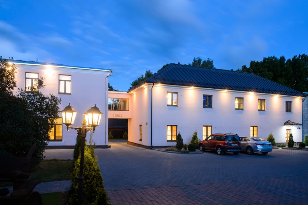 The restaurant “Postmark” is located on the ground floor of the building. You can also view the restaurant’s menu on the venue’s website. The hotel is located on the second floor; a mini spa and saunas are available.