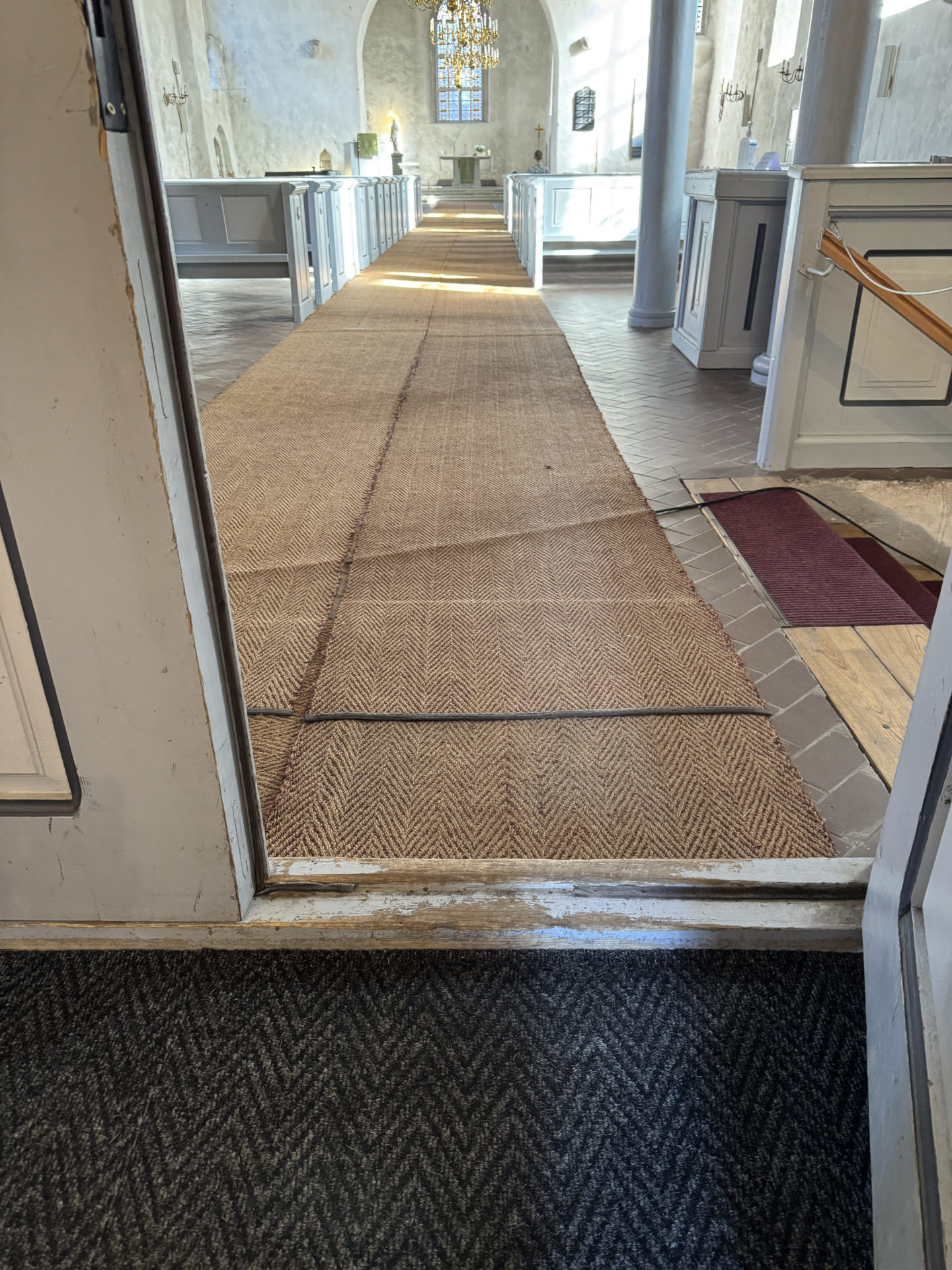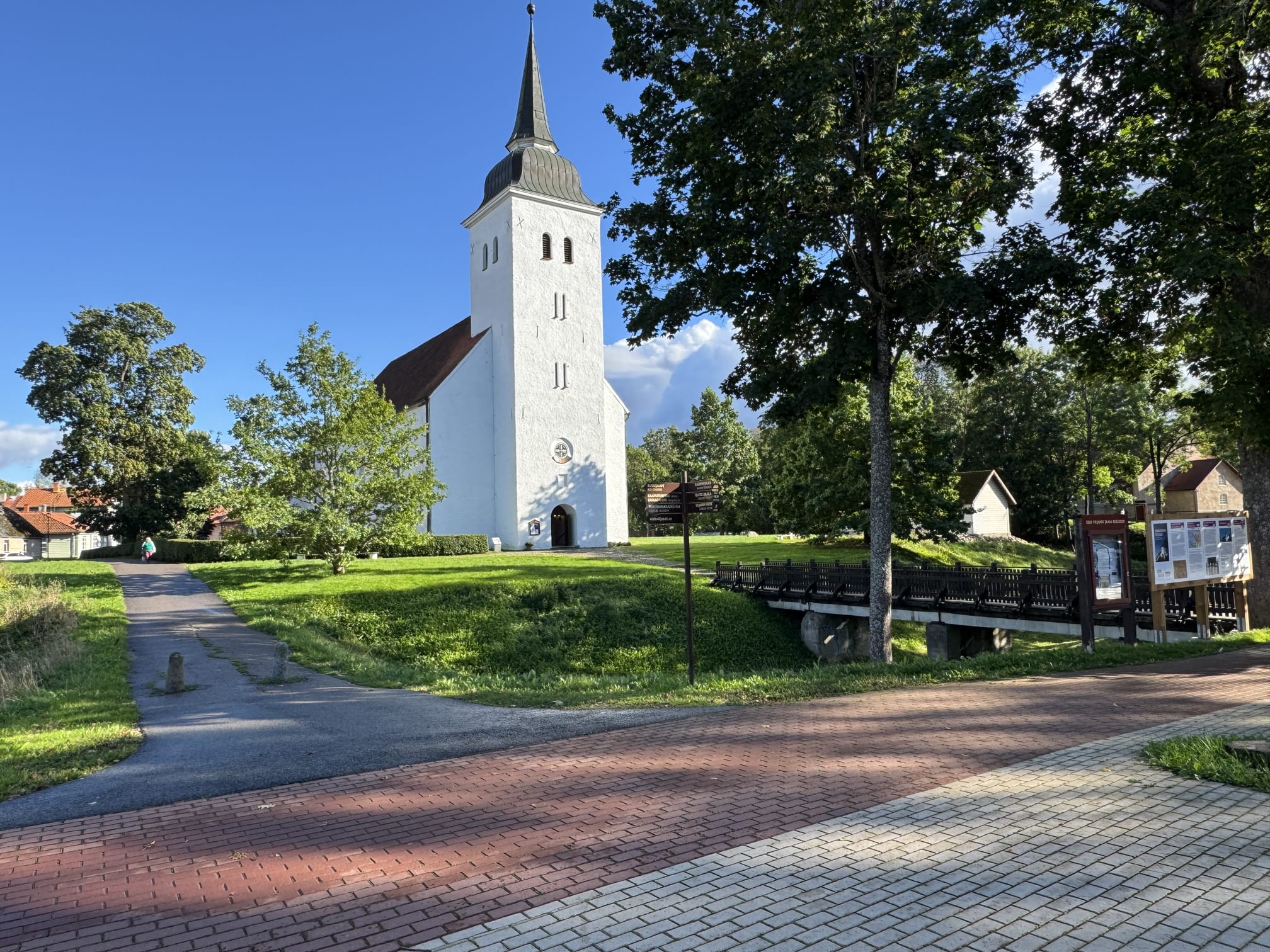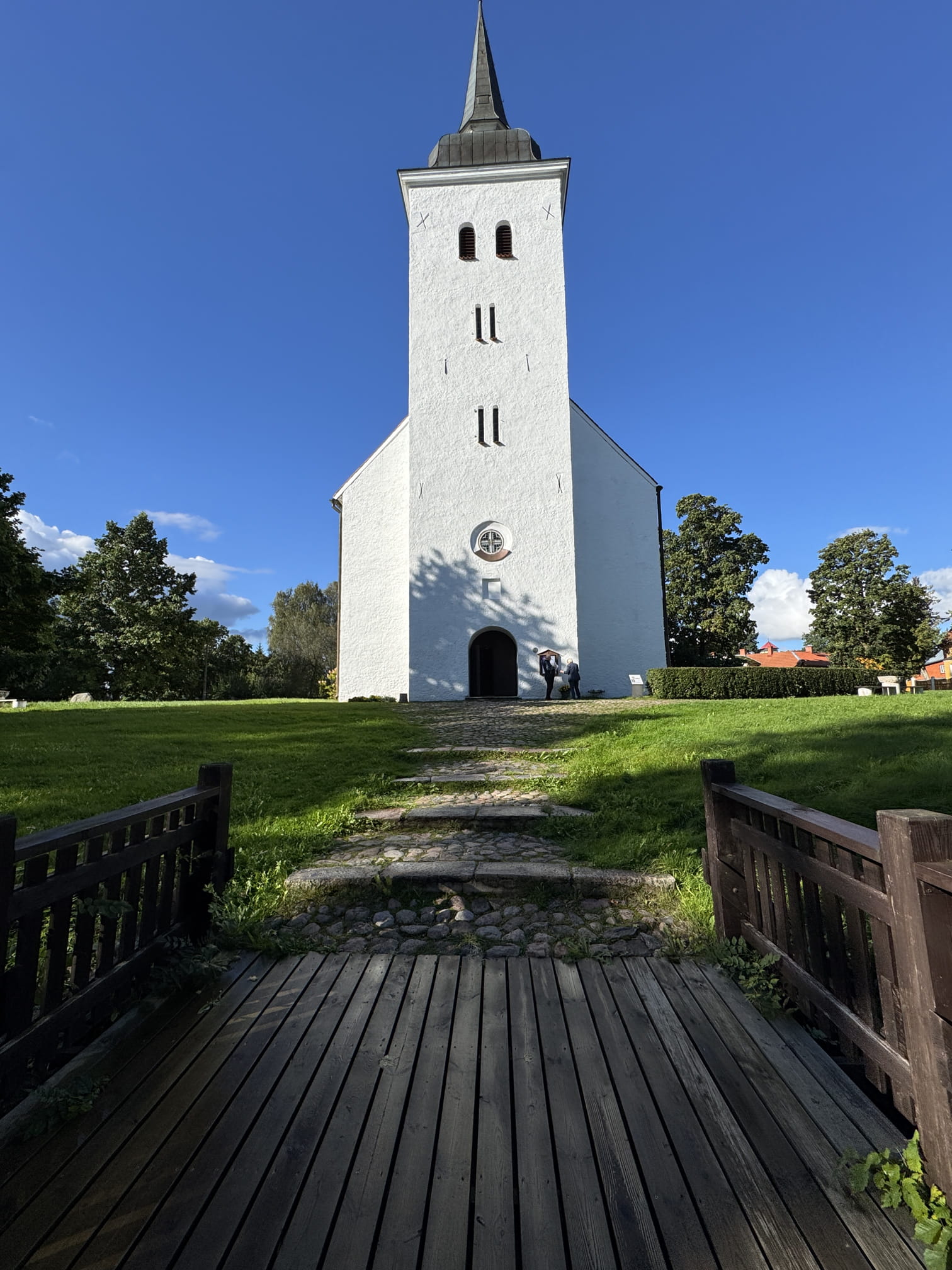 The path to the church leads through a bridge, that has steps and is covered wholly in cobblestone. Entrance to the church is with steps and there are more steps in side the church. However, inside there is a wooden board for use which may pose minor hazard, but might suit some visitors.