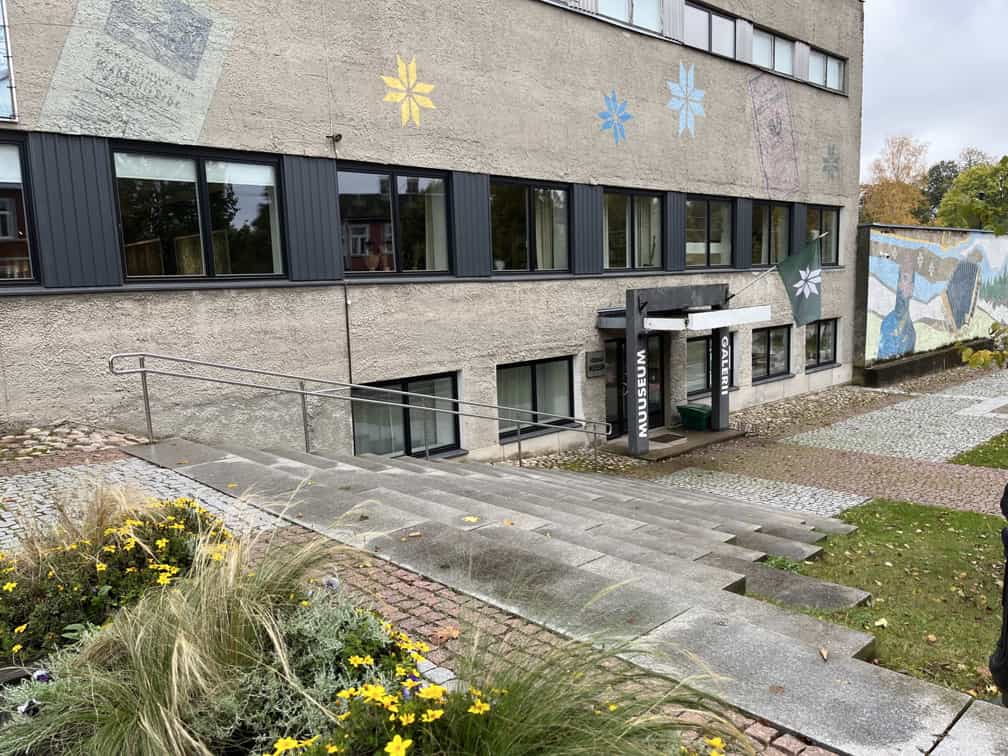 There are steps in front of Võrumaa Museum. The ramp there is steep, but when approaching from the street, it is possible to use a gentler route in order to view the Catherine II sculpture.