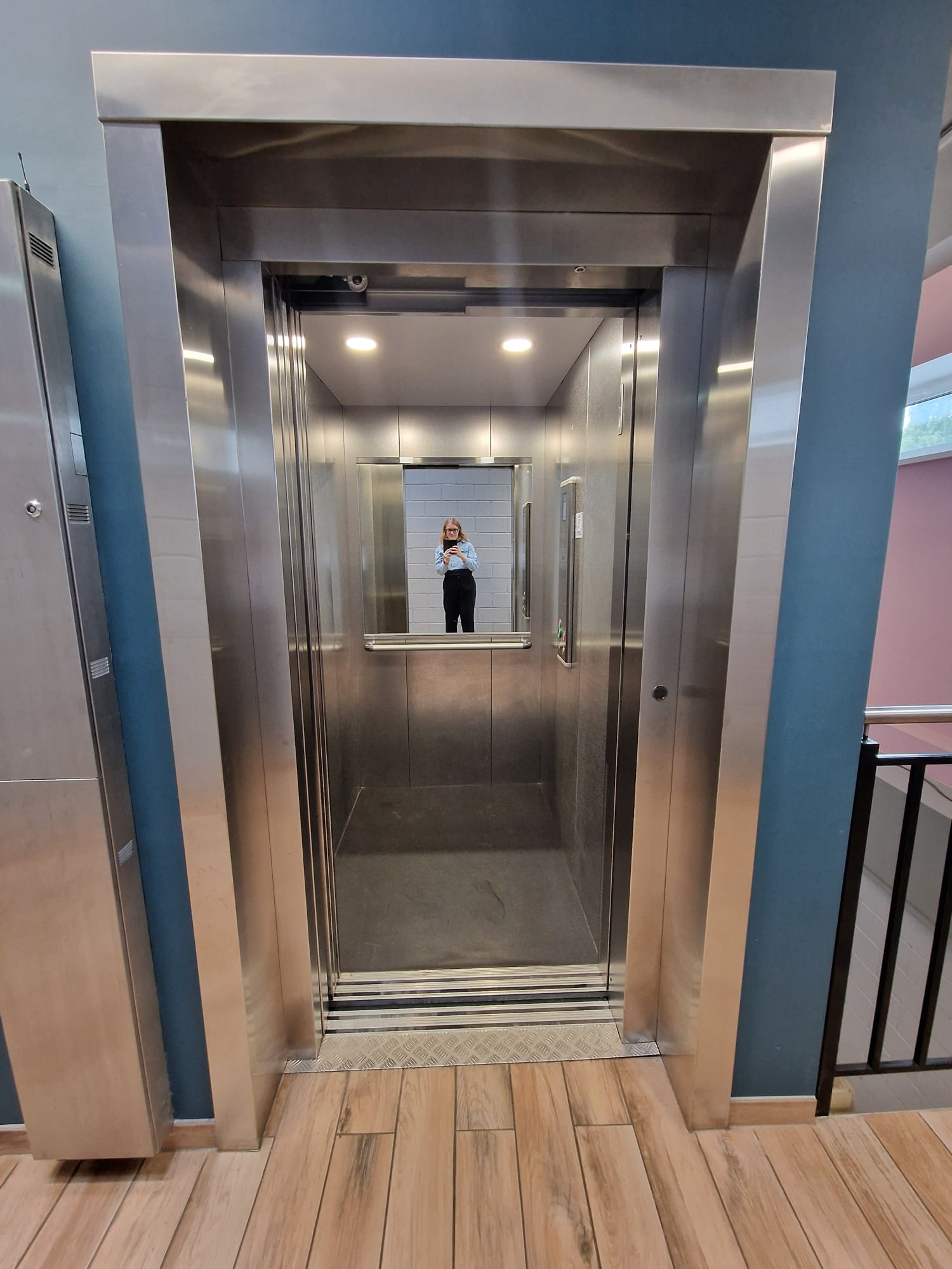 There is one parking space available that is designated accessible in front of the building. There is a ramp at the entrance and an accessible toilet on the second floor reachable by an elevator. No audio information in the elevator, but the buttons are tactile. No thresholds or handshower in the restroom, but handrails available.