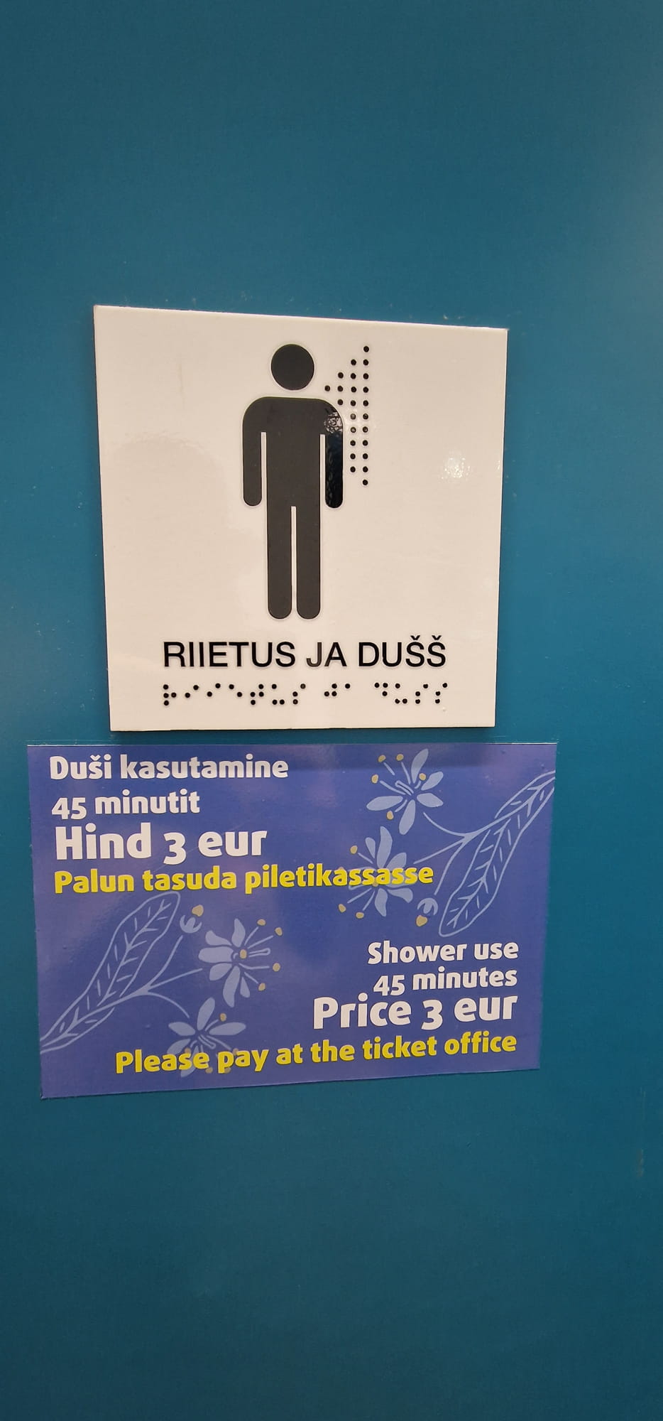 Nearest parking spaces are on Aia street (1 spot). The doors are either regular or revolving. The bus station has guidpaths for the blind and signs in Braille and tactile print. Using the toilet is free of charge for people with disabilities when pushing the button for entering. The bus station is equipped with a clean toilet and a washing opportunity. There are a cafe and R-kiosk inside the building.
