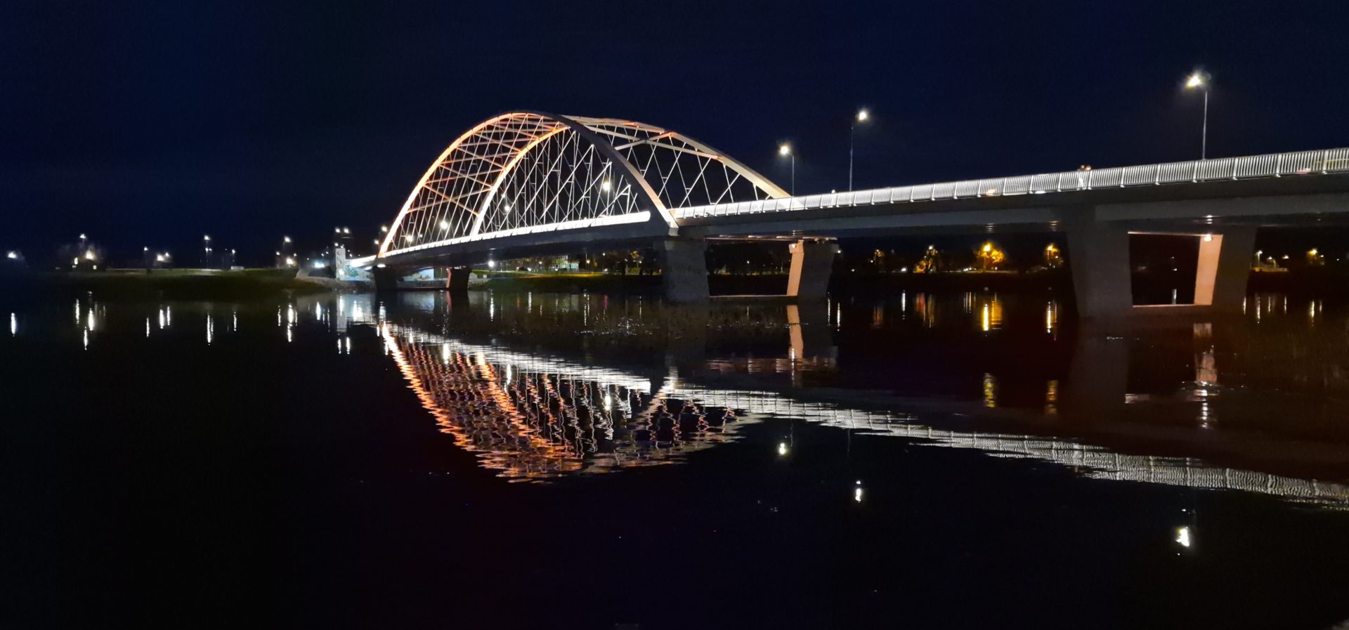 The newly built tied-arch bridge became the longest span bridge in Estonia, incorporating innovative solutions and technology during construction. The bridge was built on three pillars installed in the river, with most of the deck and steel arch construction carried out on the left bank of the river. The nearly 1,200-ton structure was “transported” onto the bridge pillars in August 2024.