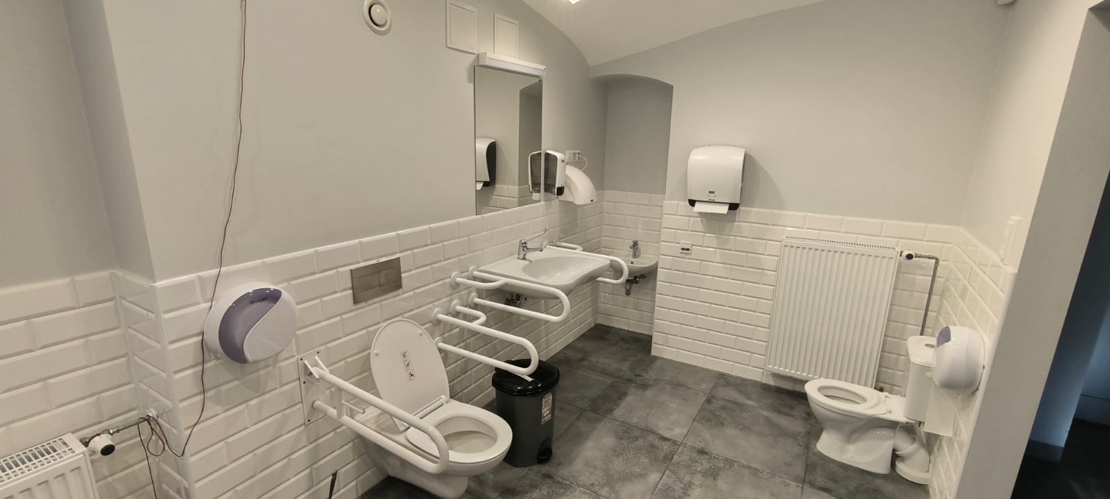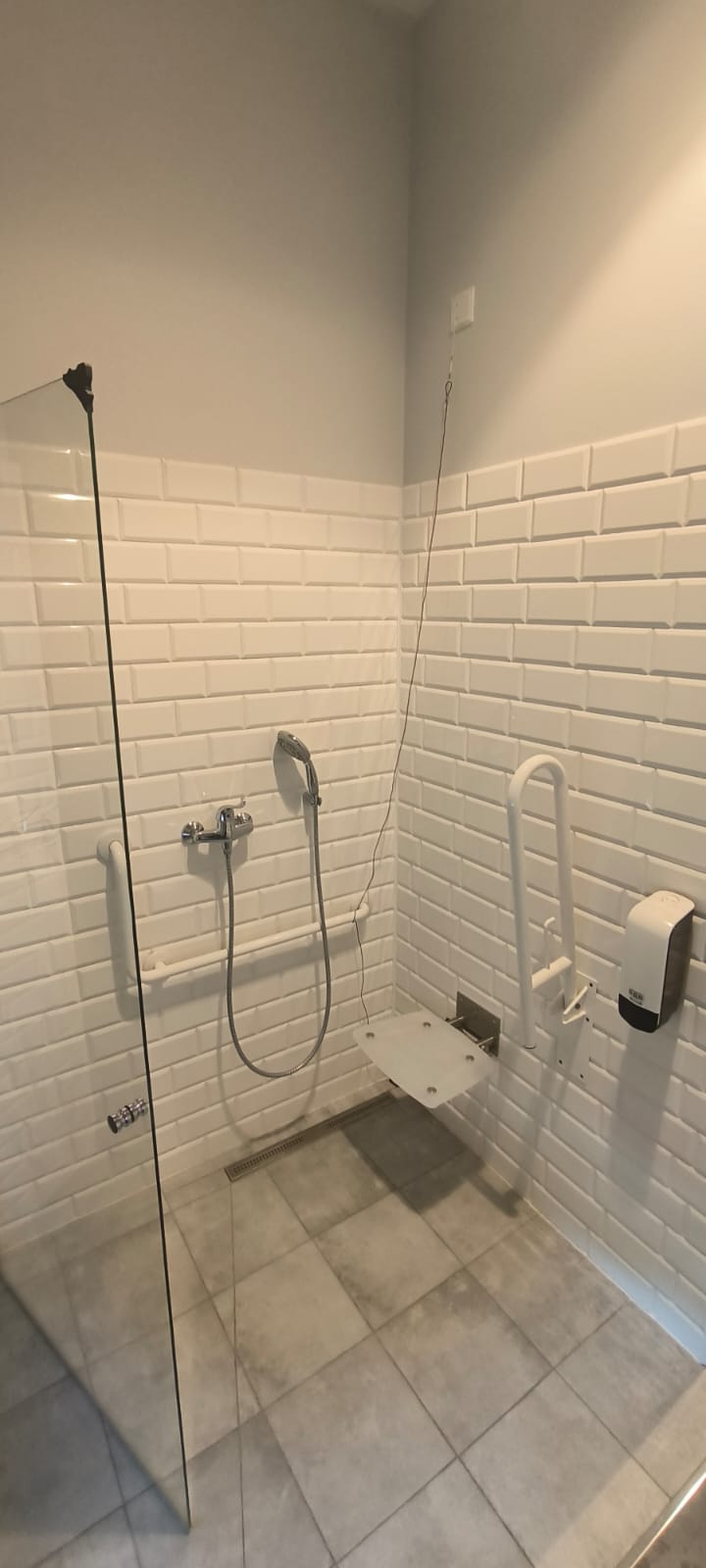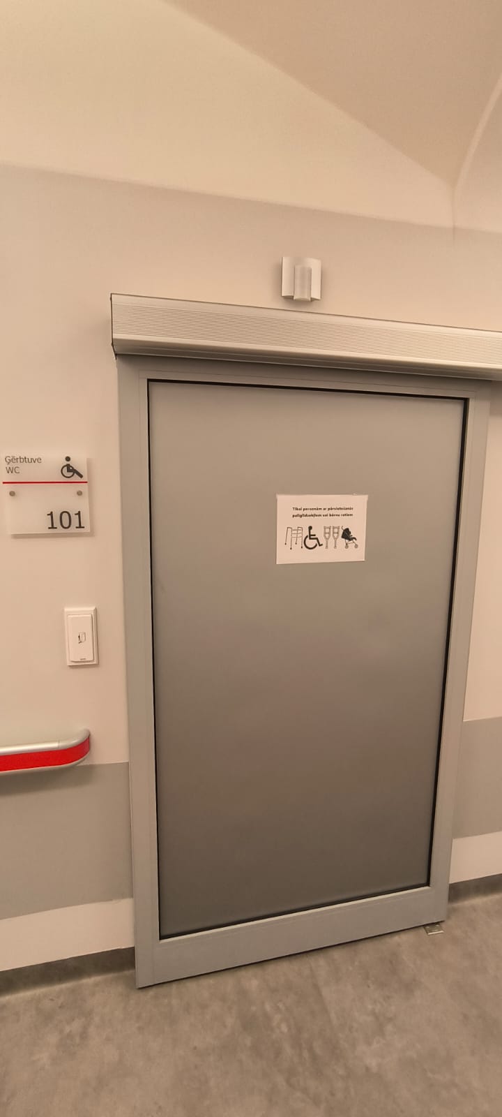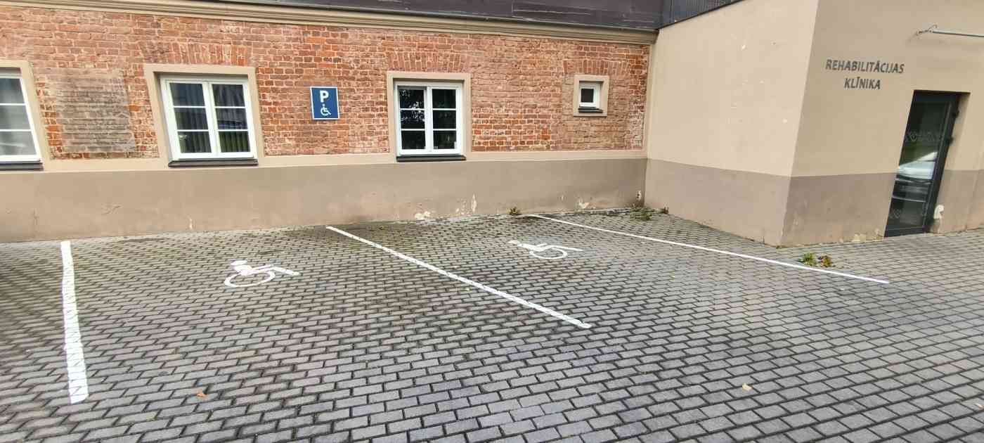 The rehabilitation clinic has moved to new, modernized premises. The clinic is best accessed from the courtyard, as there are stairs on the Kr. Valdemāra street side. All floors can be accessed by elevator, which has Braille buttons and audio information about the floors. The elevator can be accessed from the glass annex or from inside the clinic. Both floors have accessible toilets with shower cubicles, a folding chair mounted on the wall, and a changing table, potty, and sink for small children in the first-floor toilet. There is also a parking space for people with disabilities next to the clinic.