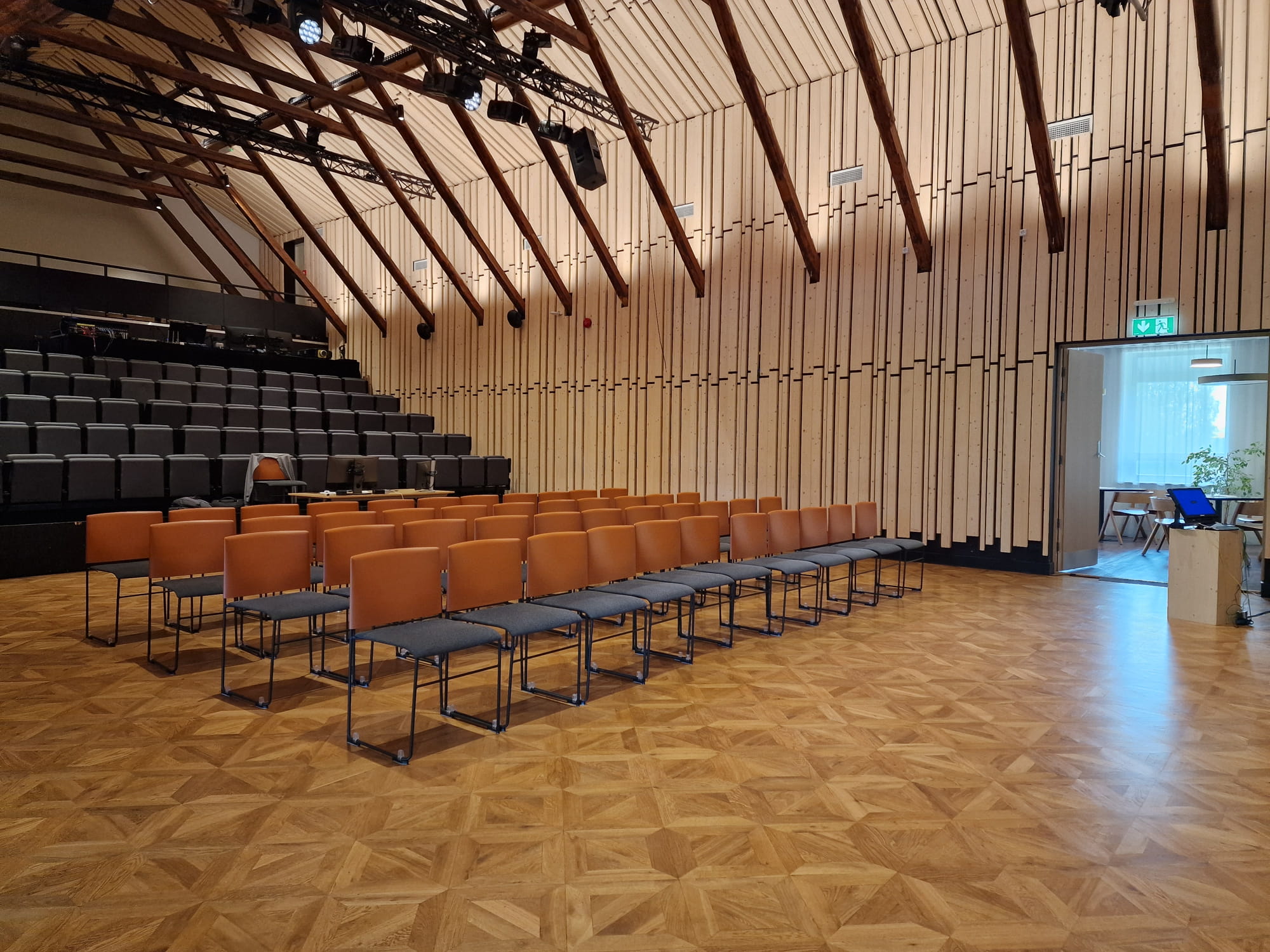 When entering the library through the main entrance, there are three steps and no handrails. The Rõuge Community Centre has a large, spacious hall with movable chairs and level access. Upon entering the community centre, there is a cloakroom and benches without armrests.