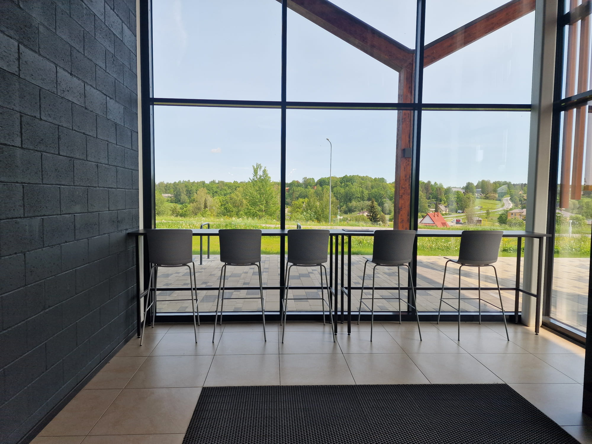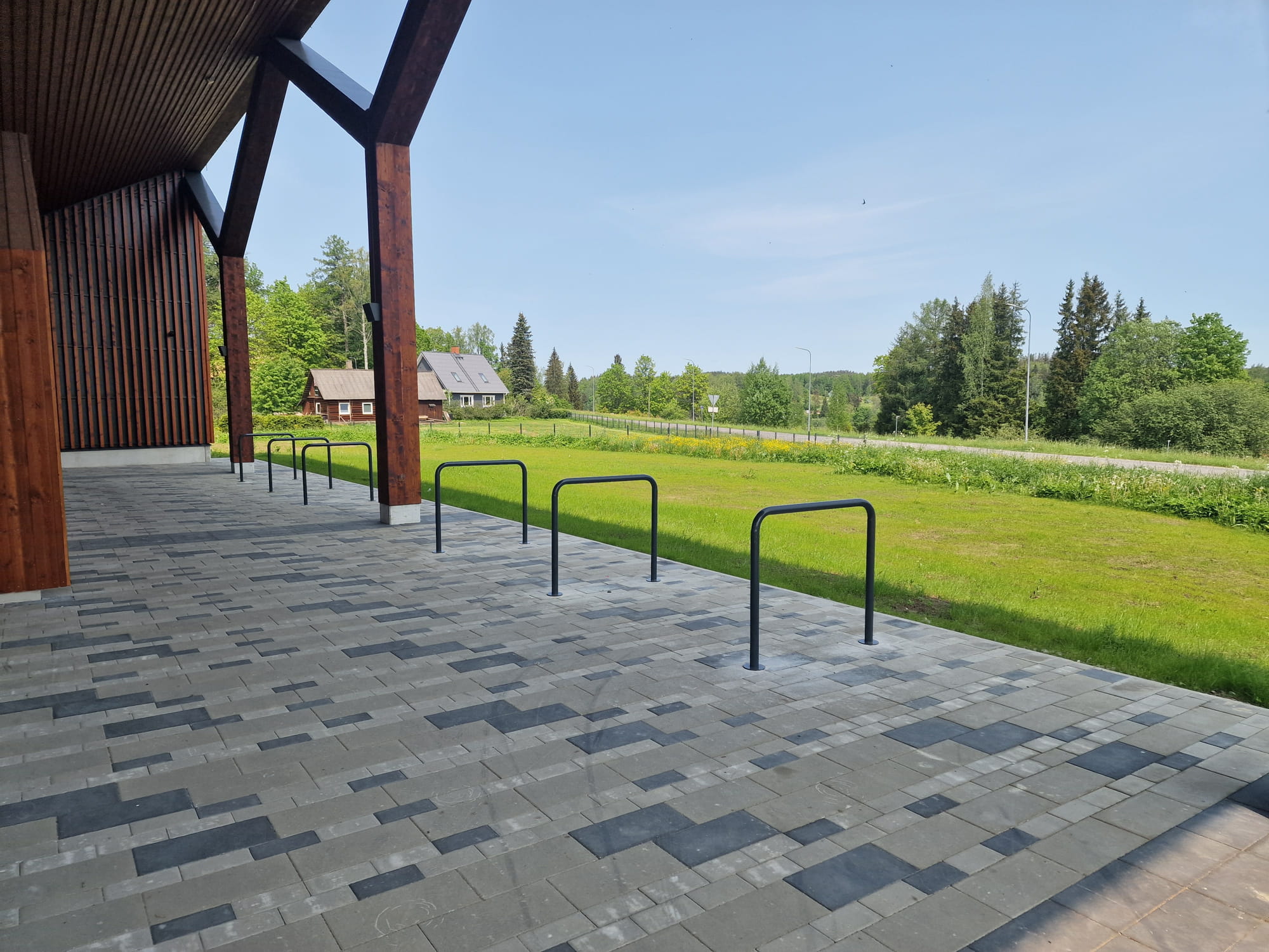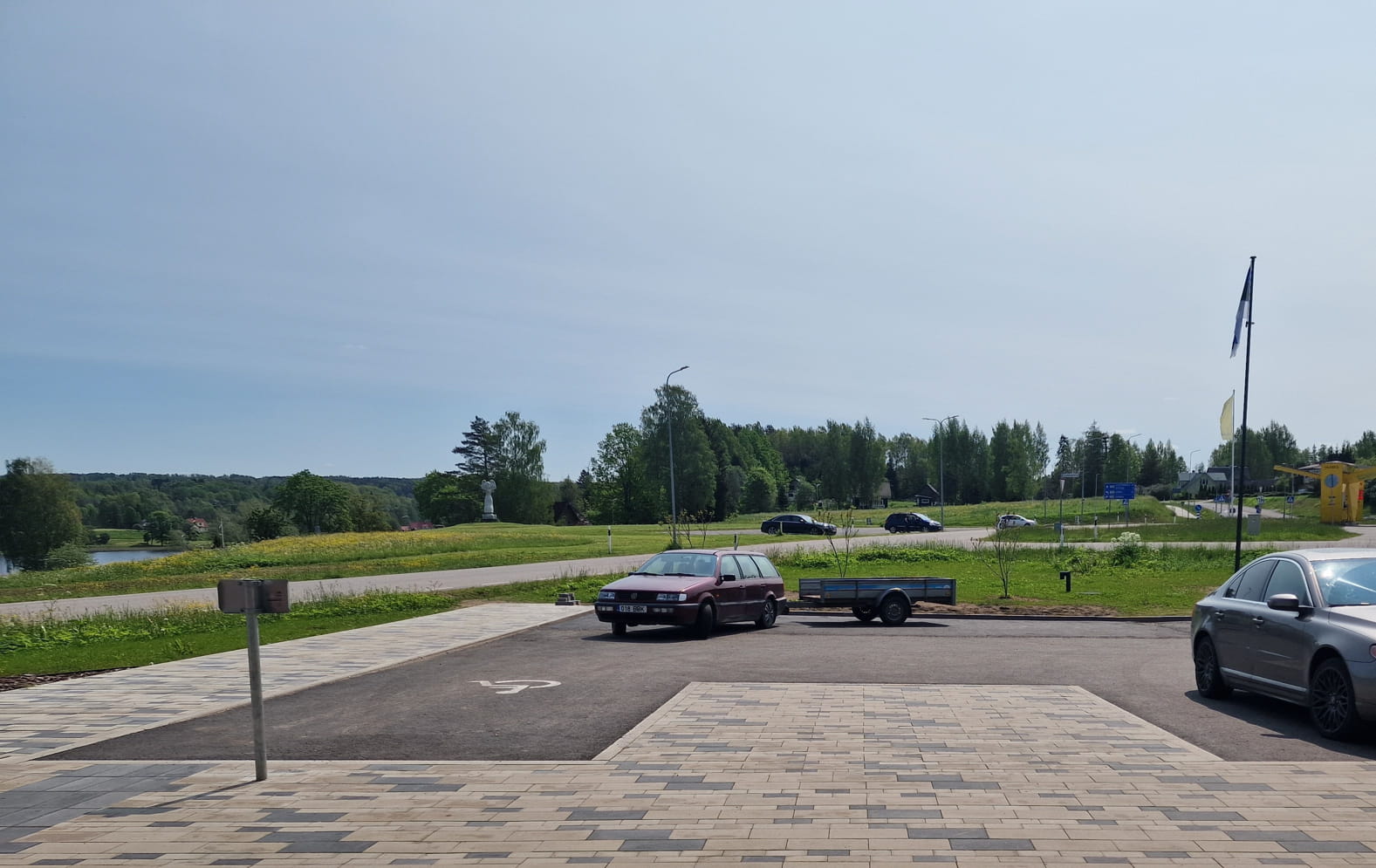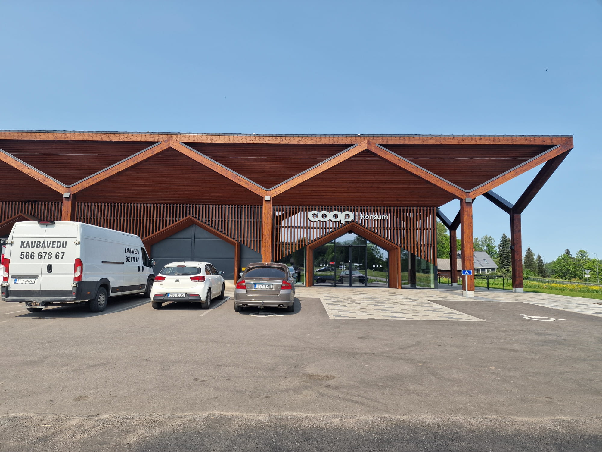 In front of the store there is a large parking area with two designated parking spaces for people with disabilities, and to the right of the entrance, along the side of the building, there is a large bicycle parking area. The parking lot offers a picturesque view of the Rõuge Valley.