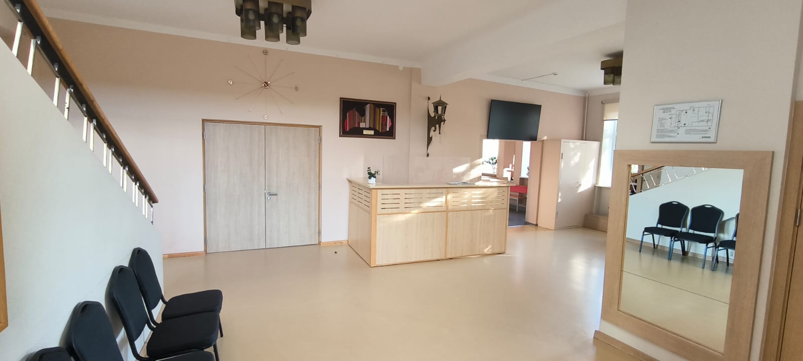 The cultural center is accessible, as there is a ramp in front of the entrance door. Spacious rooms. No adapted toilet.