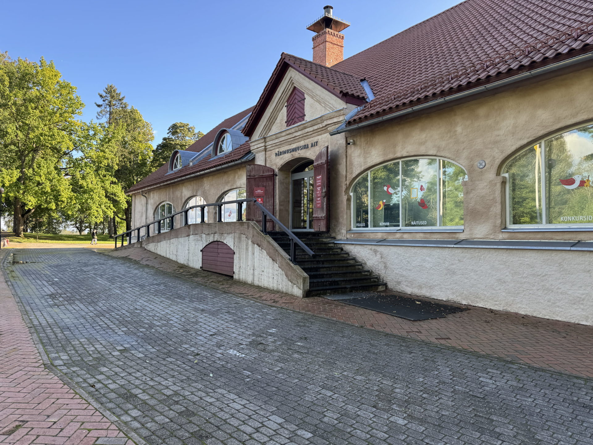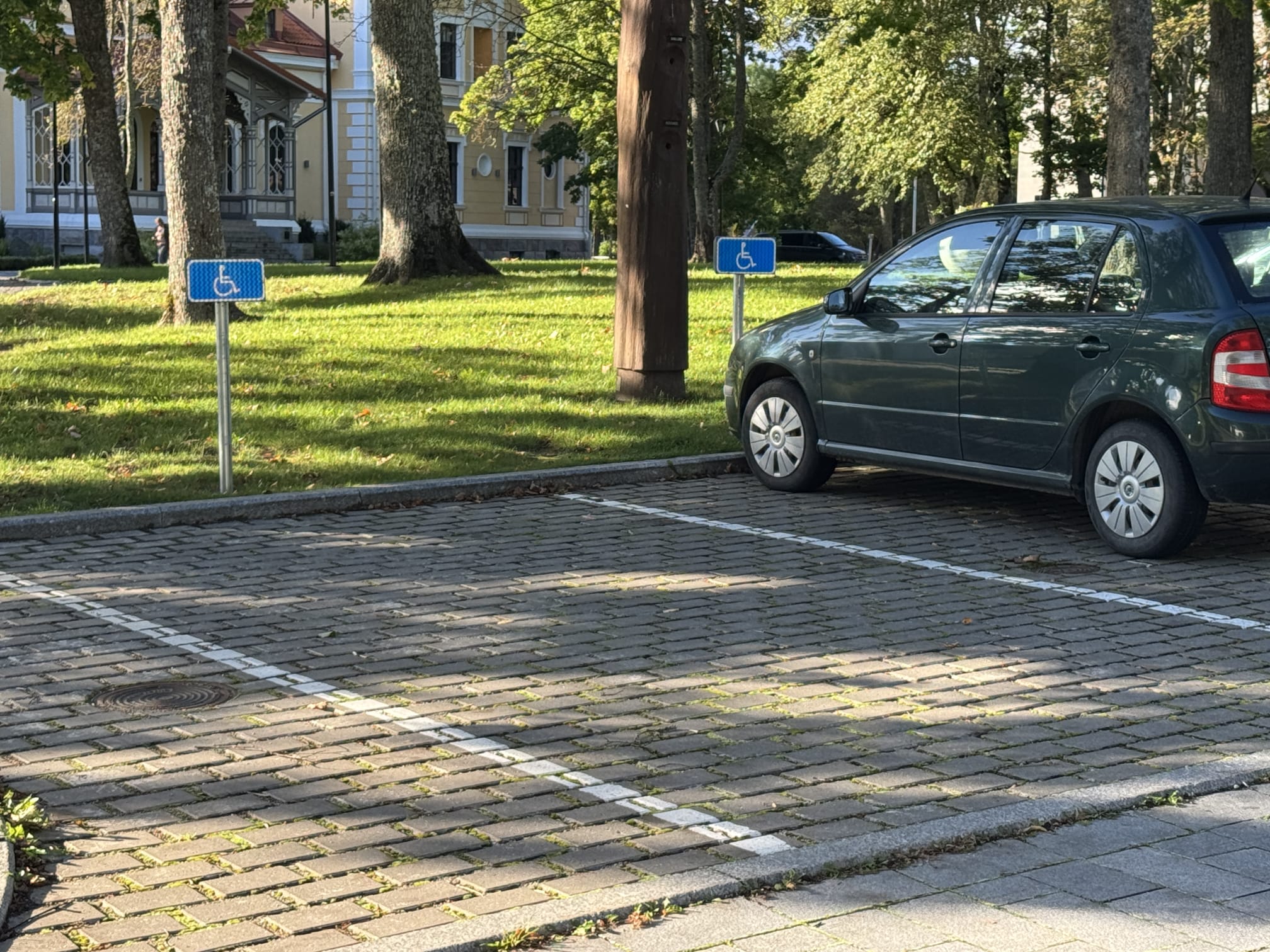 Parkimiskohad (2) asuvad umbes 100 meetri kaugusel keskusest Tasuja puiesteel, Laulupeoplatsi nõlval. Sama parkla on mõeldud ka Jaani kiriku külastajatele. Kivisillutisega kaldtee (märjalt libe) on üsna järsk. Uks avaneb väljapoole ning sissepääsu ees on umbes 5 cm kõrgune lävepakk (uks ei püsi iseseisvalt lahti, kuid selle saab fikseerida).