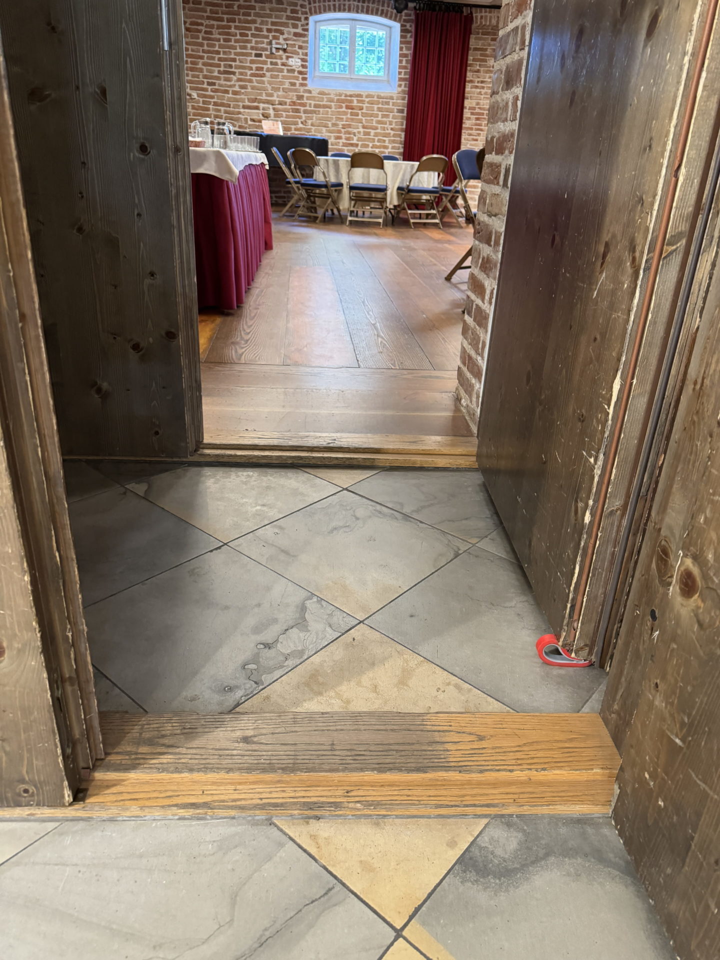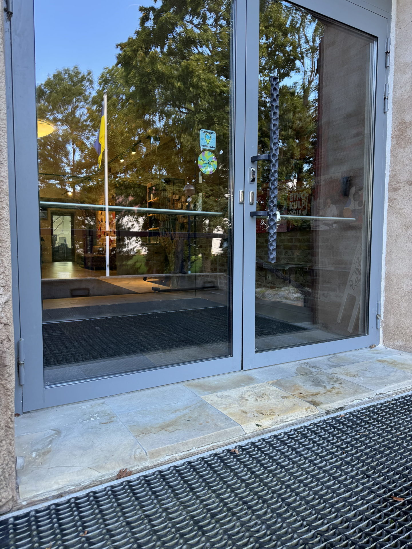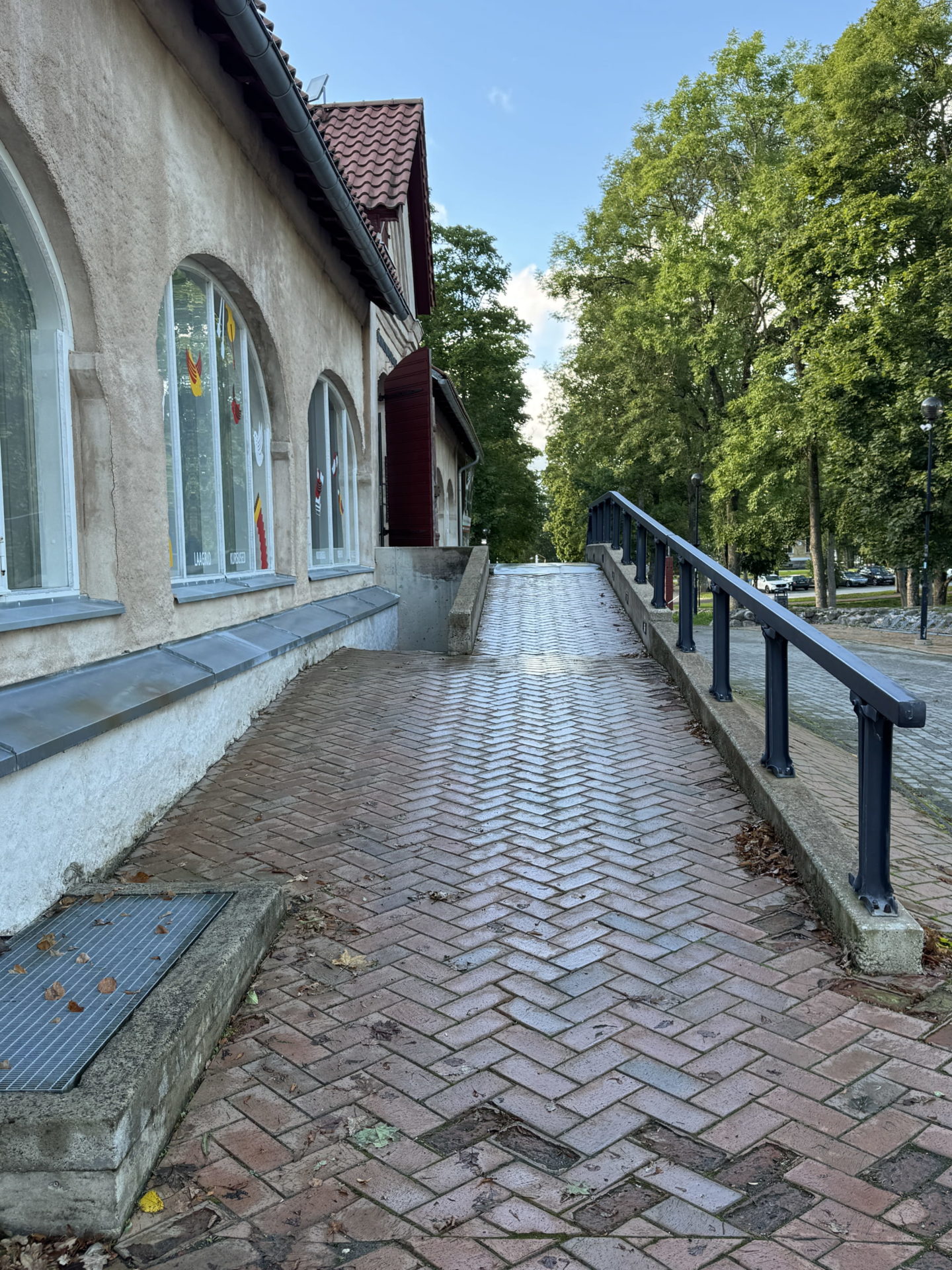 Sissepääsu juures on kaldtee, mis on veidi järsk.