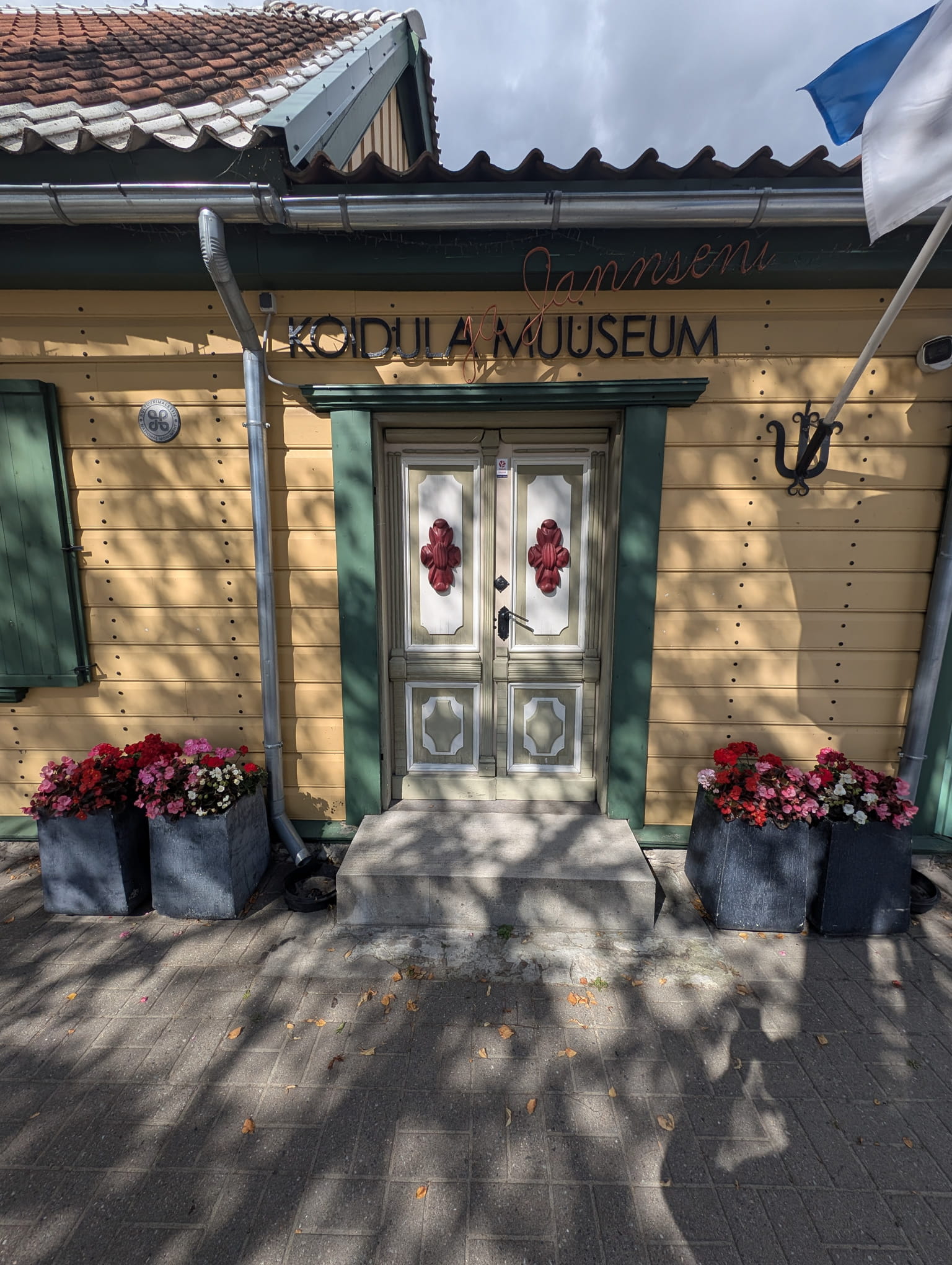 Muuseumi peasissepääs asub Jannseni tänaval. Ukse ees on umbes 20 cm kõrgune betoonastme. Uks on vanaaegne ja kahepoolne, millest avaneb ainult parem pool. Uks avaneb sissepoole. Kohe ukse taga on automaatsed liuguksed. Nende taga on kitsas esik garderoobiga. Ülerõivaid ei pea sinna jätma, kuid soovi korral võib. Pööra vasakule ja liigu edasi. Siseuks avaneb samuti sissepoole ja paremale ning ukse avanedes heliseb kelluke.