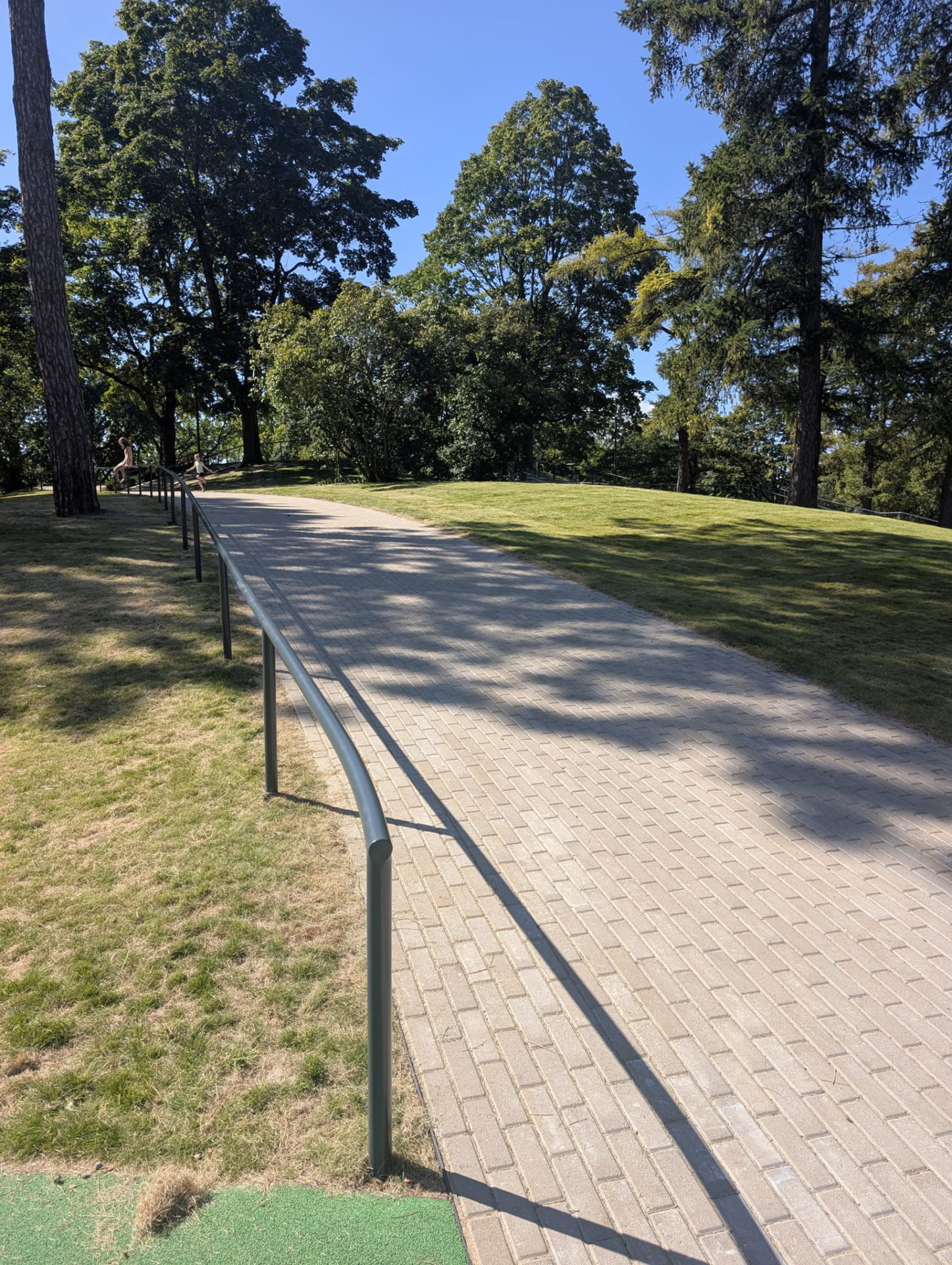 Hiljuti taasavatud ja renoveeritud Munamäe park ja samanimeline küngas on nüüd varustatud kaldteega, mis võimaldab ligipääsu künka tippu, kus asuvad ka puhkepingid. Teerajal on ühel pool käsipuu alt üles minnes vasakul. Maastikuarhitektuuri eripärade tõttu külastada vajadusel saatjaga.