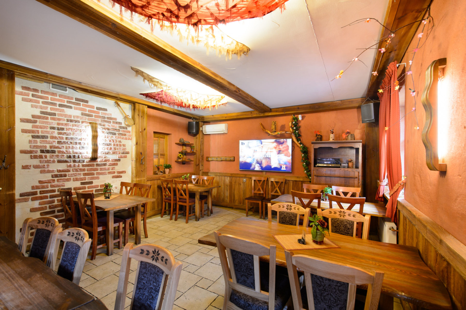 Hoone esimesel korrusel asub pubi, kus on maitsvad kohalikud road. Teisel korrusel asub külalistemaja.