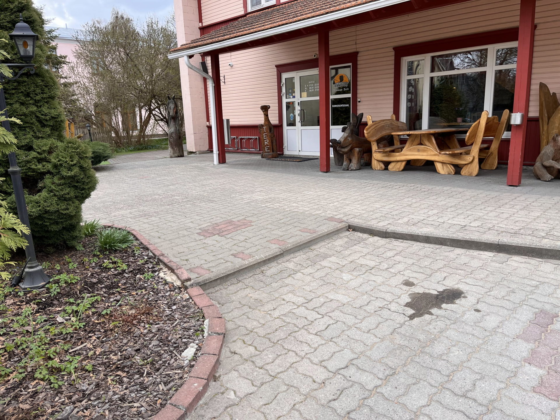Restoran asub esimesel korrusel. Majutuse poolele on võimalik ratastooliga siseneda hoone tagant parklast. Ees on aste ja kõrgem lävepakk. Restoranis on tore, sõbralik ja isiklik teenindus.
