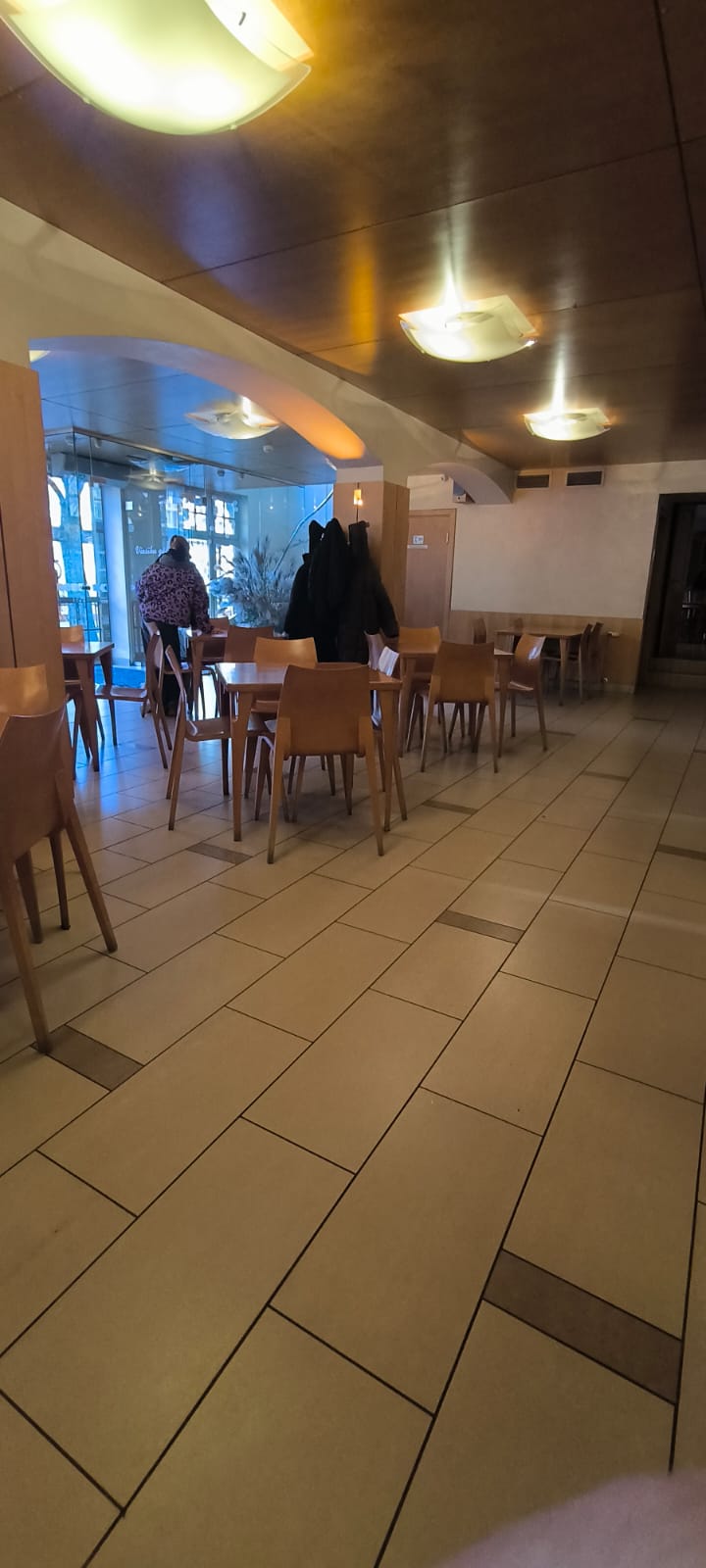 Bistro var tikt iekšā ratiņkrēsla lietotāji. Plašas telpas, ir pielāgota tualete, zema lete.