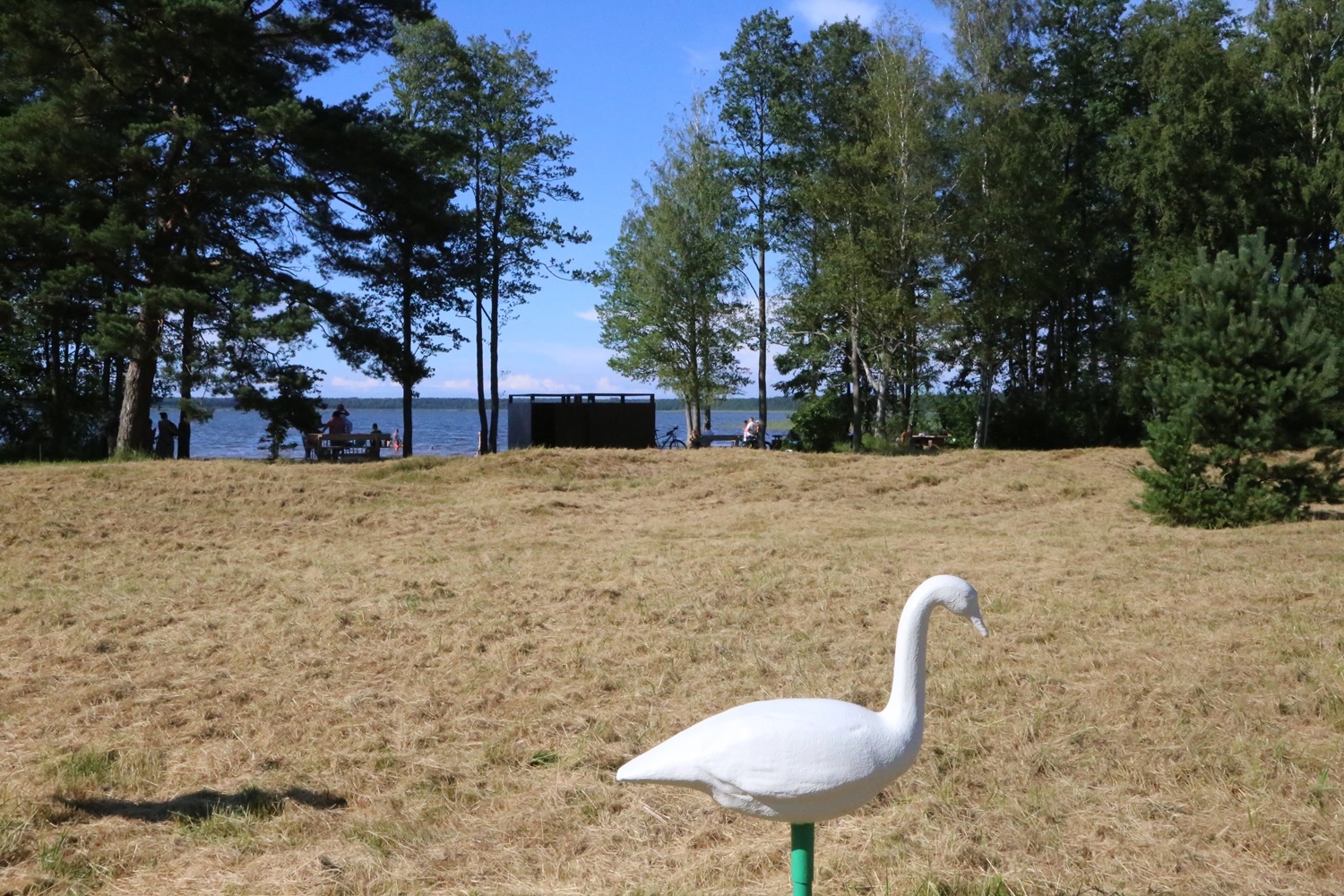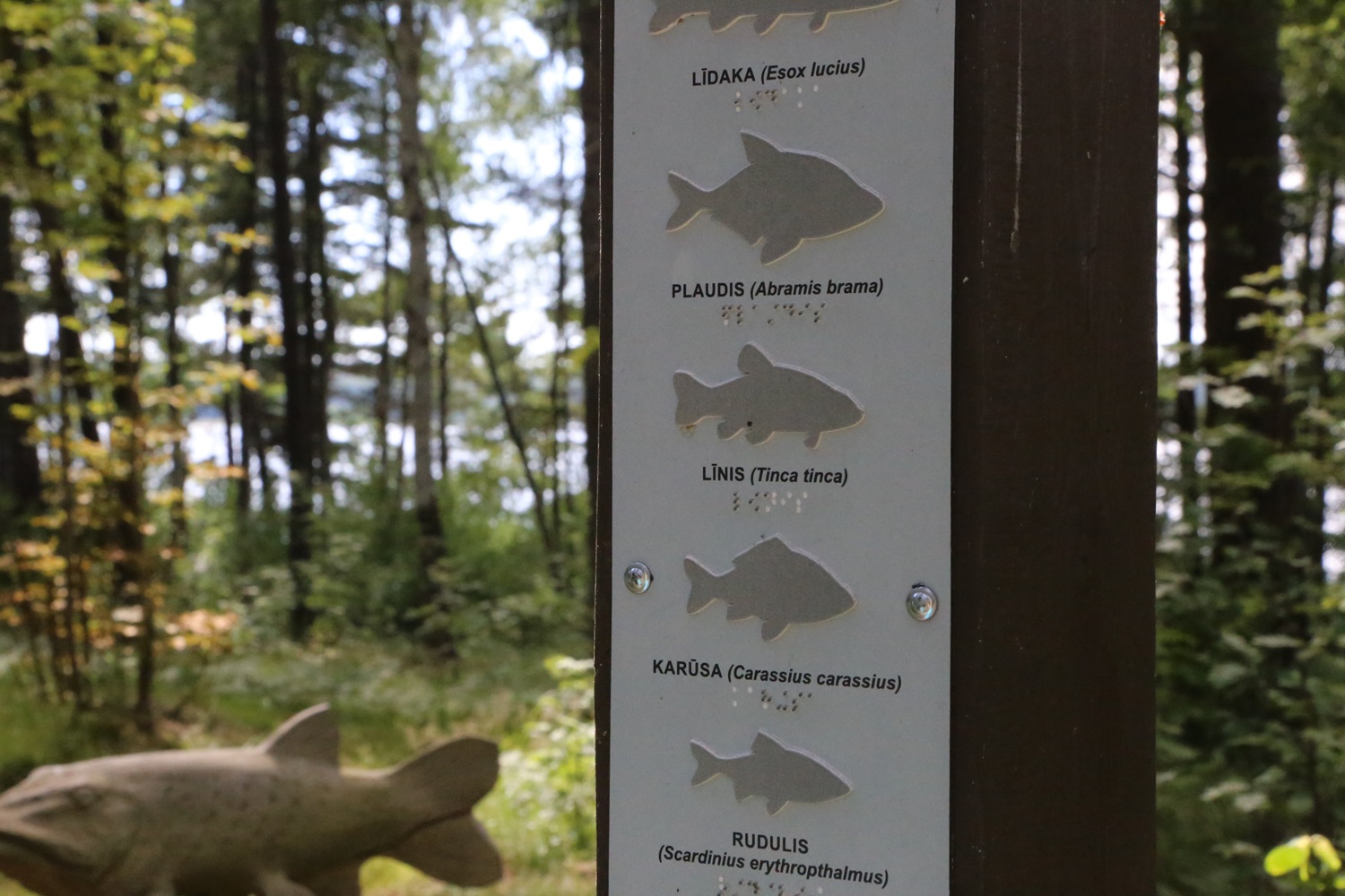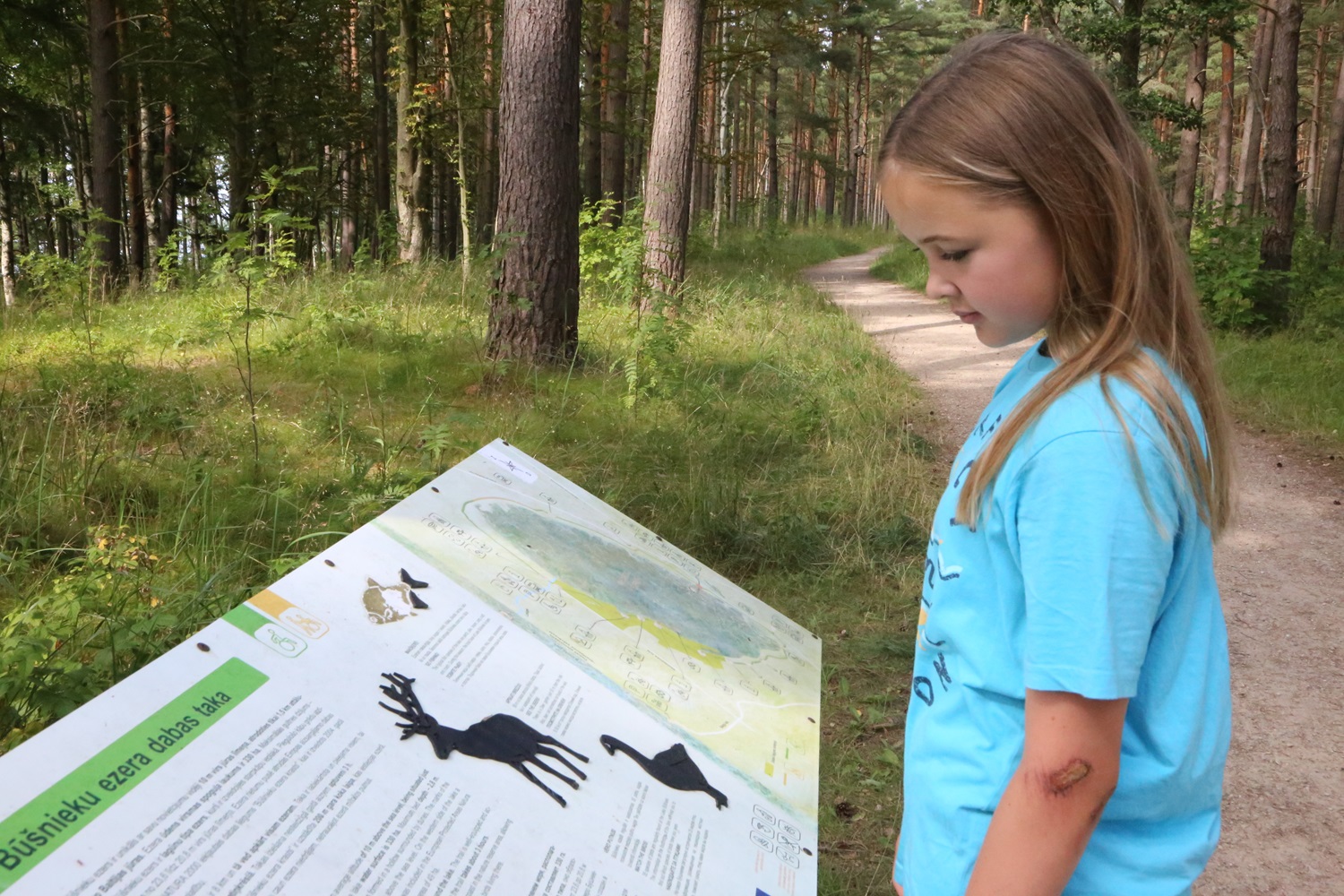 Netālu no pārģērbšanās kabīnes būs redzamas apkārtnē mītošo putnu figūras. Bet, ja paredzēta došanās pastaigā pa Būšnieku ezera taku, tad visā takas garumā ir gan norādes zīmes ar noietajiem kilometriem, pieejamības piktogrammām, informatīvie stendi, arī ezerā mītošo zivju figūras, labiekārtotas peldvietas un piknika vietas.