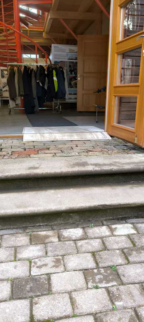 Ēkā var iekļūt no pagalma puses pa uzbrauktuvi. Vienīgi laukums ir par šauru pie ārdurvīm, tāpēc vēlams izmantot asistenta palīdzību, lai pa pārvietojamo rampu tiktu ēkas iekšpusē. Ēkā ir pielāgota tualete.