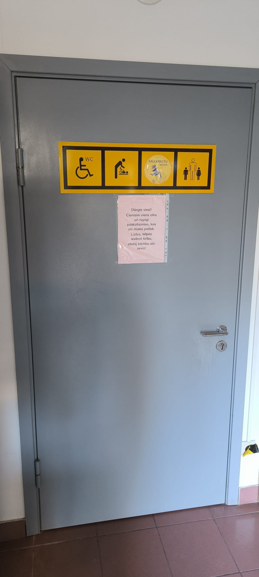 Sabiedriskās iestādes, Ir pielāgota tualete, Pieejams, Pieejams vecākiem ar bērnu ratiņiem, Stāvvieta cilvēkiem invaliditāti