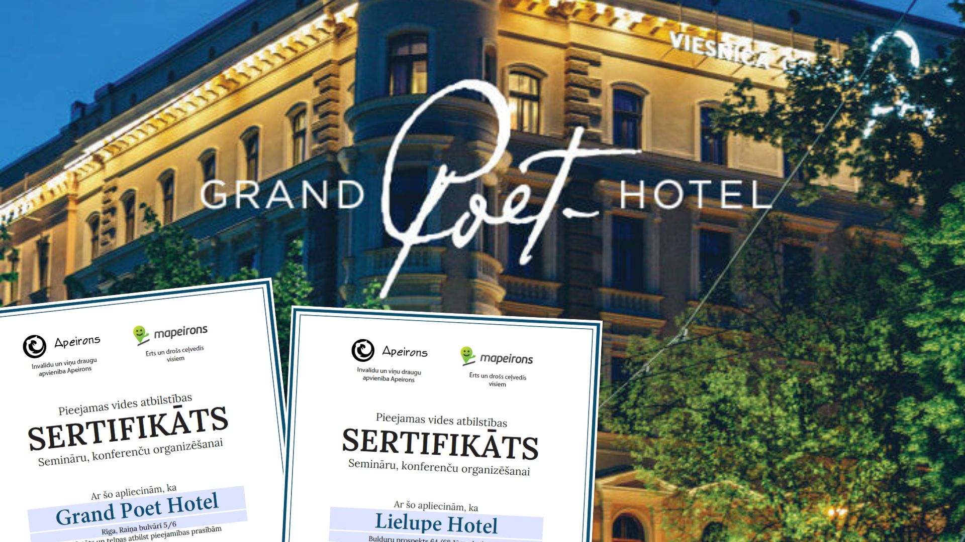 Sertifikāti piešķirti “Grand Poet Hotel” un “Lielupe Hotel”
